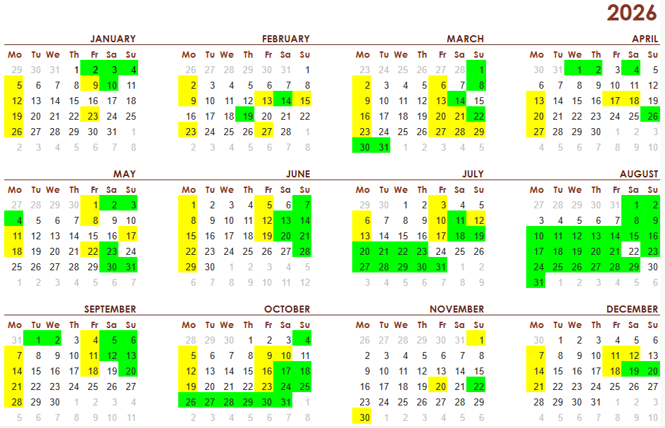 - This calendar is updated approximately twice monthly (last updated 17/11/2025)